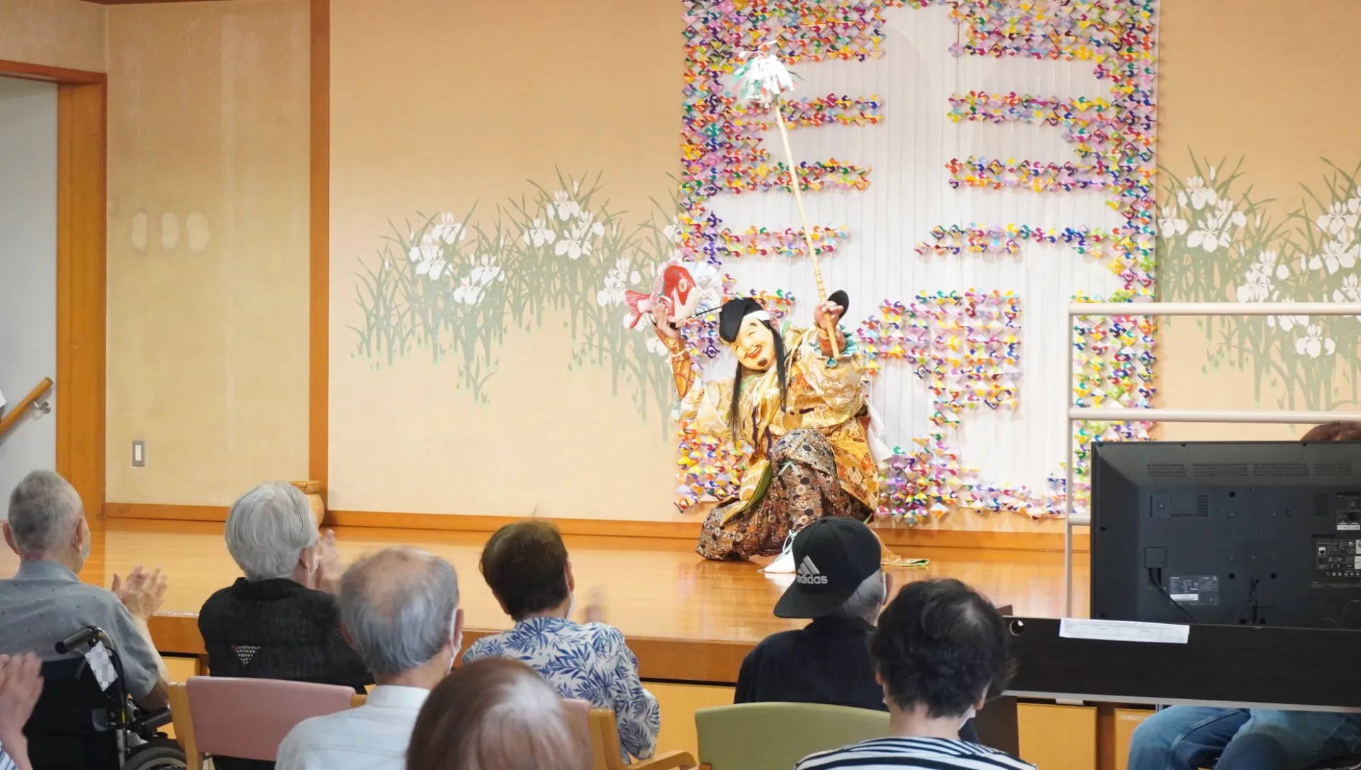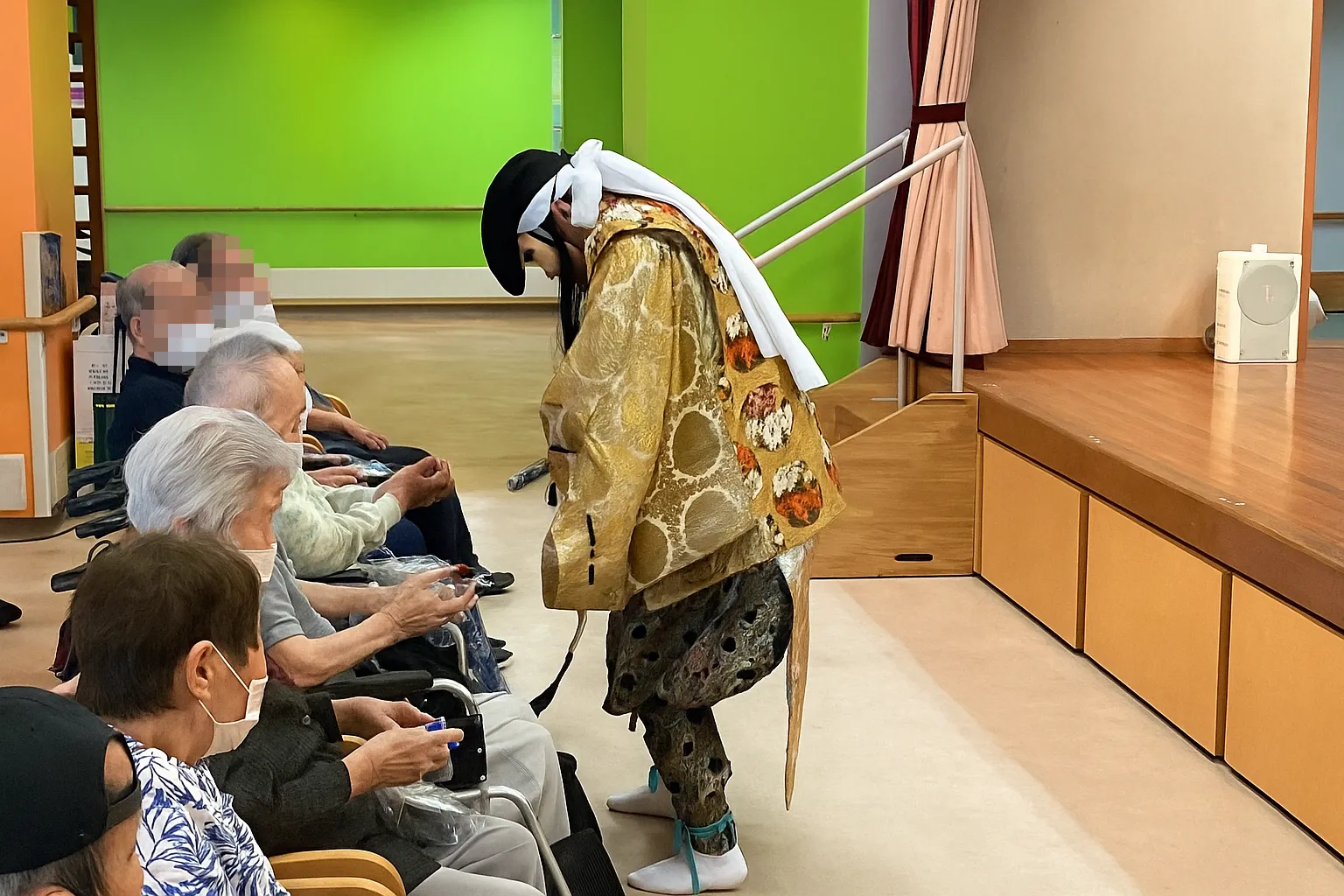 迫力ある舞とユーモラスなやりとりに、利用者さまも思わず笑顔になったり、真剣に見入ったりと、とても貴重な時間を過ごすことができました。