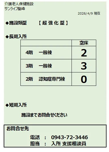 サンライフ聖峰は、田主丸中央病院併設の介護老人保健施設(老健)として平成3年に開設されました。開設当初より老健の「5つの理念と役割」を積極的に進めてまいりました。それは「包括的ケアサービス施設」「リハビリテーション施設」「在宅復帰施設」「在宅生活支援施設」「地域に根ざした施設」です。現在は少子高齢化が著しくなり、介護を必要とする人が増えています。そのためには、地域全体で介護を支えることが必要だとして「地域包括ケアシステムの推進」が2025年を目途に進められています。老健は、その中核的施設の役割を担うべきと言われています。しかし自治体や医療機関、地域の皆様、そしてご家族の皆さんの協力がなければ「地域包括ケアシステム」は成り立ちません。老健は高齢者の増加に伴い、認知症の利用者も増えています。