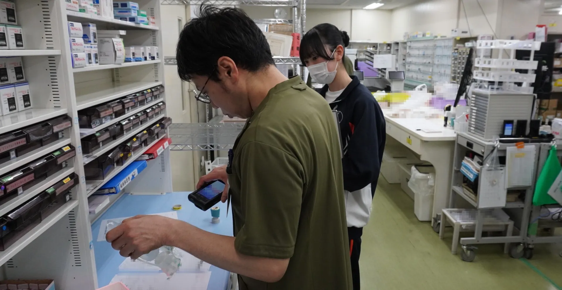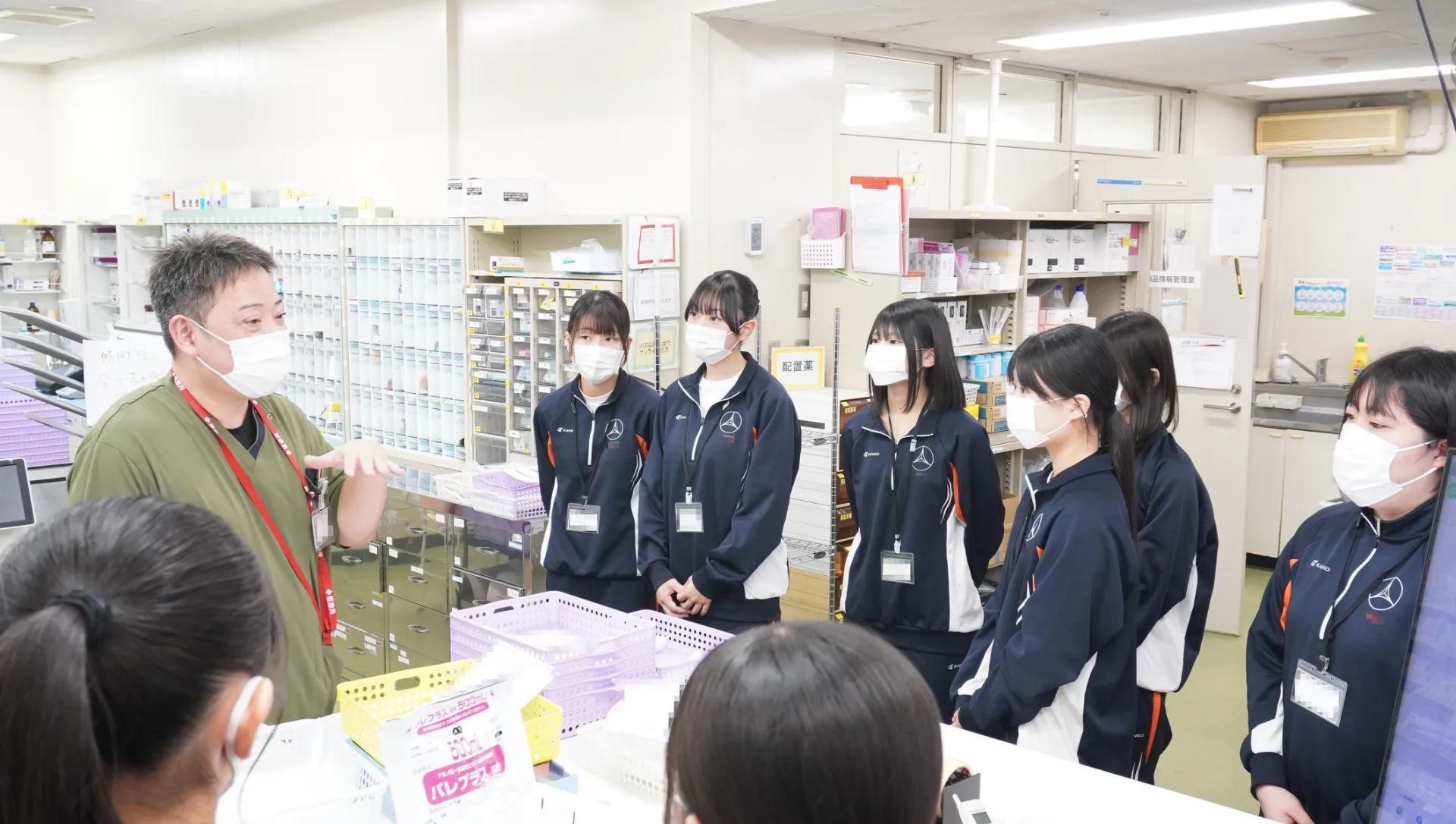 全体ガイダンスのあと、高校生は事前に希望した職種(薬剤師、理学療法士、管理栄養士、臨床心理士など)の部署に分かれ、見学を行ったり実際に業務を体験したりしました。