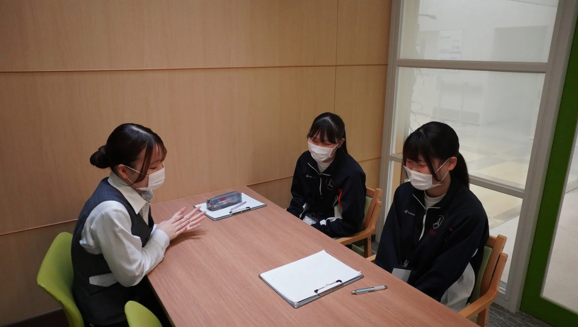 体験後は懇親会が催され、当院の職員と一緒に昼食をとりながら、職場体験の中では聞けなかった業務のことや仕事のやりがいなどを聞いたりして、楽しいひと時となりました。