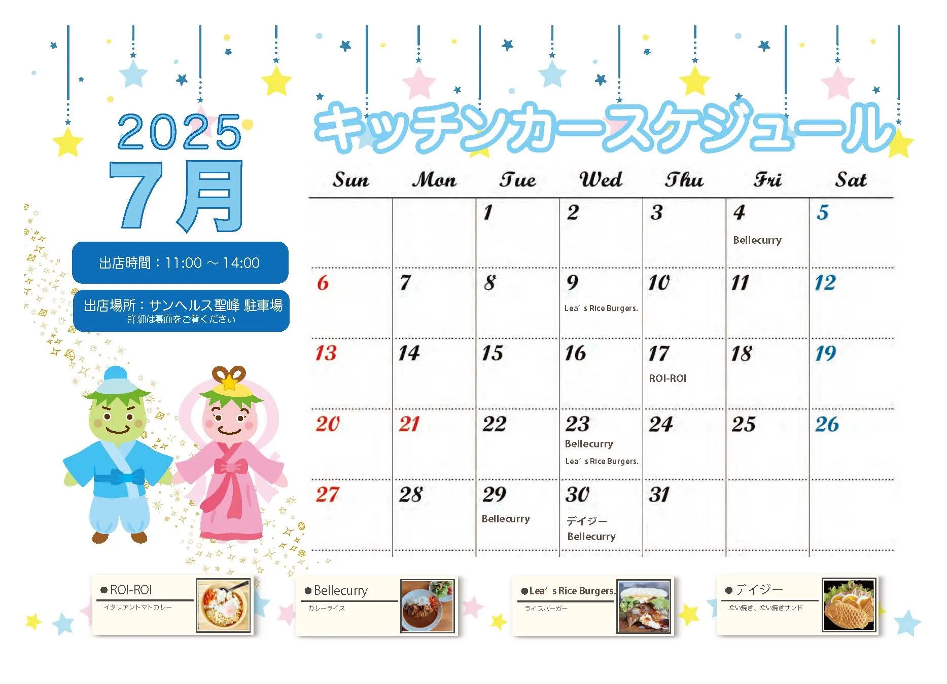 令和7年7月も、日替わりでキッチンカーがやって来ます。
