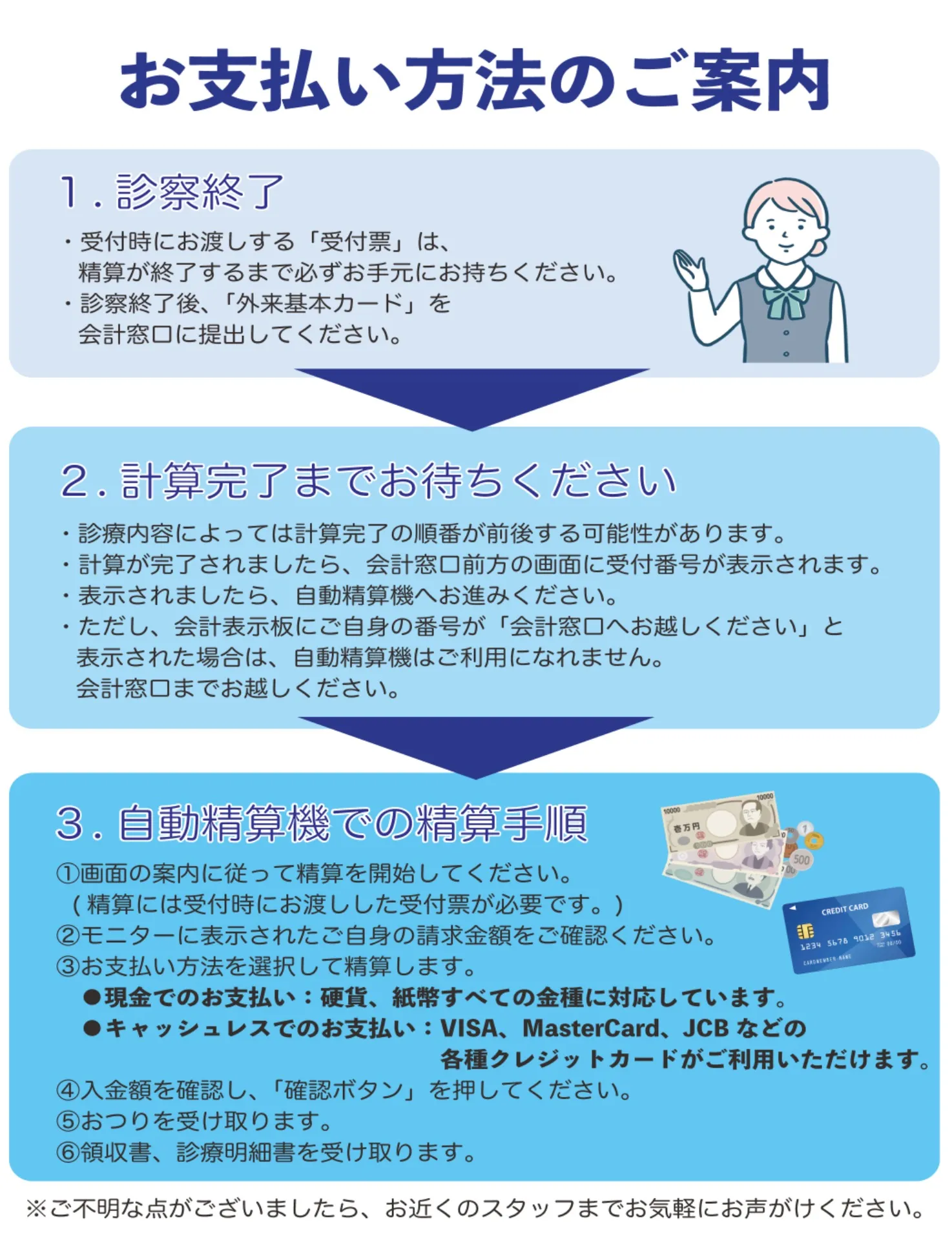 これにより、患者さまの待ち時間が短縮され、よりスムーズな会計手続きが可能となります。