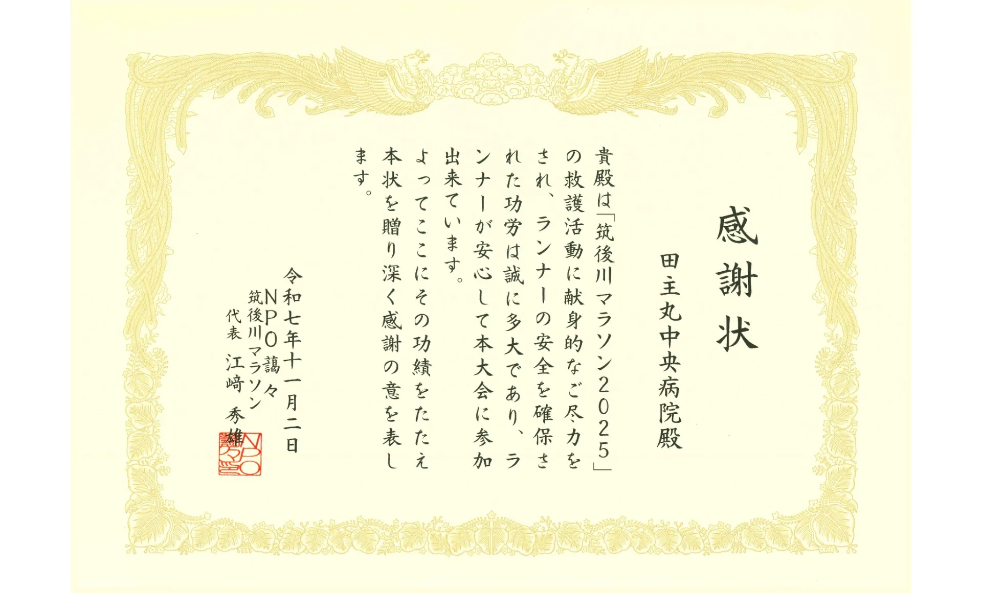 2025年11月2日(日曜日)、久留米市で開催された「筑後川マラソン大会2025」に、当院から医療救護スタッフを派遣しました。